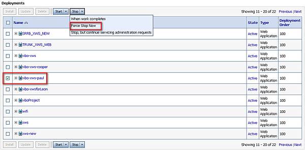 2.舊war檔需移除 stop > Force Stop Now (status is changed to prepared) > Delete