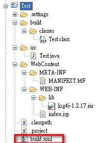 build.xml放置在專案(Test)目錄下,針對build.xml 右鍵 > Run As > Ant Build